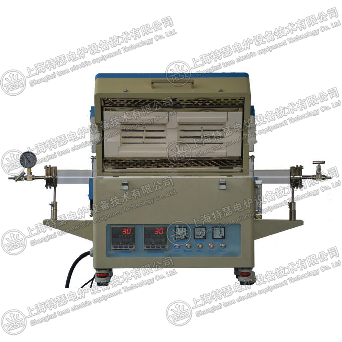 這款管式爐以瑞典康泰爾進口電阻絲為加熱元件,采用雙層殼體結構和控溫儀表,能進行30段程序控溫,移相觸發、可控硅控制,爐膛采用氧化鋁多晶纖維材料,爐膛分為上下兩個半圓,需要急速冷卻或換管子時,可以打開爐膛,爐管兩端裝有不銹鋼法蘭,不銹鋼法蘭上安裝有氣嘴、閥門和壓力表,抽真空時真空度能夠達到10-3 Pa,該爐為對開式,分兩個溫區,兩個溫區可以獨立控制、設置不同的溫度,使用方便,操作簡單,該爐具有溫場均衡、表面溫度低、升降溫度速率快、節能等優點,是高校、科研院所、工礦企業做高溫氣氛燒結、氣氛還原、CVD實驗、真空退火用的理想產品.。