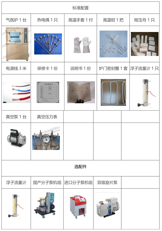 各種剛玉坩堝,高溫手套,計算機控制軟件、壓力控制系統、氧含量監測系統 |