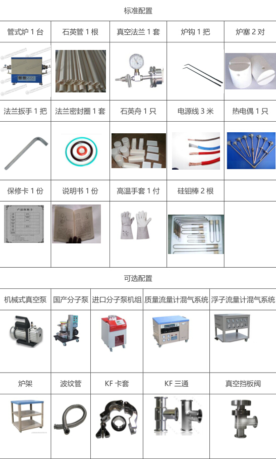 主機1臺,密封法蘭1套,“O”型圈4個,剛玉管1根,管堵4個,坩堝鉤1把, 說明書、合格證、保修卡各1份 |