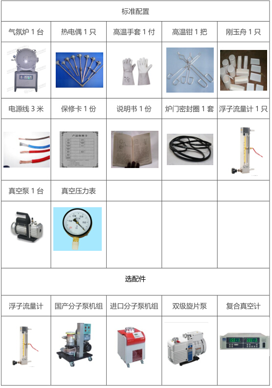 主機1臺,坩堝鉗1把,高純氧化鋁坩堝2個,說明書、合格證、保修卡各1份 |